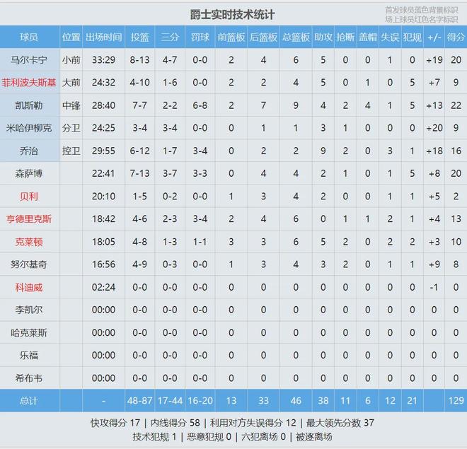 来看看快船几个新援的表现:科林斯替补出战27分51秒,投篮12中6,三分2中1,罚球2中1,得到14分7篮板1助攻1抢断1盖帽2失误,正负值0;比尔首发出战20分钟,投篮5中2,三分4中1,仅拿到5分1篮板1抢断4犯规,正负值-9。