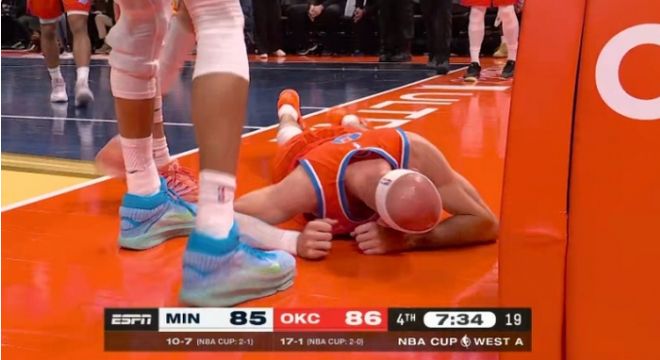 末节比赛,里德补篮得分,米切尔两罚一中,香农三分追到差3分,乔与霍姆格伦各完成一次上篮命中,迪文琴佐与香农各中一记三分追到差1分。霍姆格伦三分回敬,森林狼再得3分,戈贝尔空中打到卡鲁索头部重摔被吹罚一级恶意犯规,卡鲁索两罚全中。爱德华兹三分追到88-88,米切尔连得5分,爱德华兹与里德各中一记三分反超1分。哈尔滕施泰因空接暴扣,爱德华兹连得4分,亚历山大连续造犯规6罚全中维持101-98领先。迪文琴佐三分追平,亚历山大上篮命中,双方随后连续打铁不中,戈贝尔被犯规关键两罚不中。霍姆格伦抢到篮板被犯规两罚全中扩大4分优势,爱德华兹三分续命追到差1分,霍姆格伦关键三分命中。迪文琴佐上篮不中,亚历山大被犯规两罚一中,森林狼致命8秒违例,亚历山大继续被犯规两罚全中扩大7分优势终结悬念,森林狼已经无力回天,最终雷霆险胜森林狼豪取10连胜。