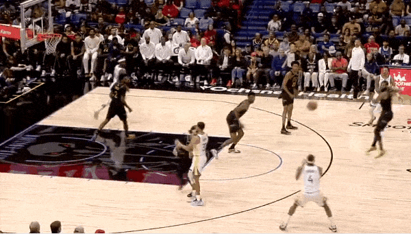 坏消息,杰伦·布朗飞身扑球撞到小琼斯腿后,小琼斯被抬下场